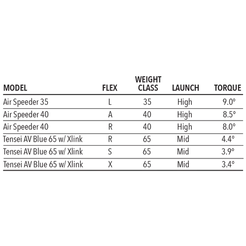 No Upcharge Custom Shaft Specs: