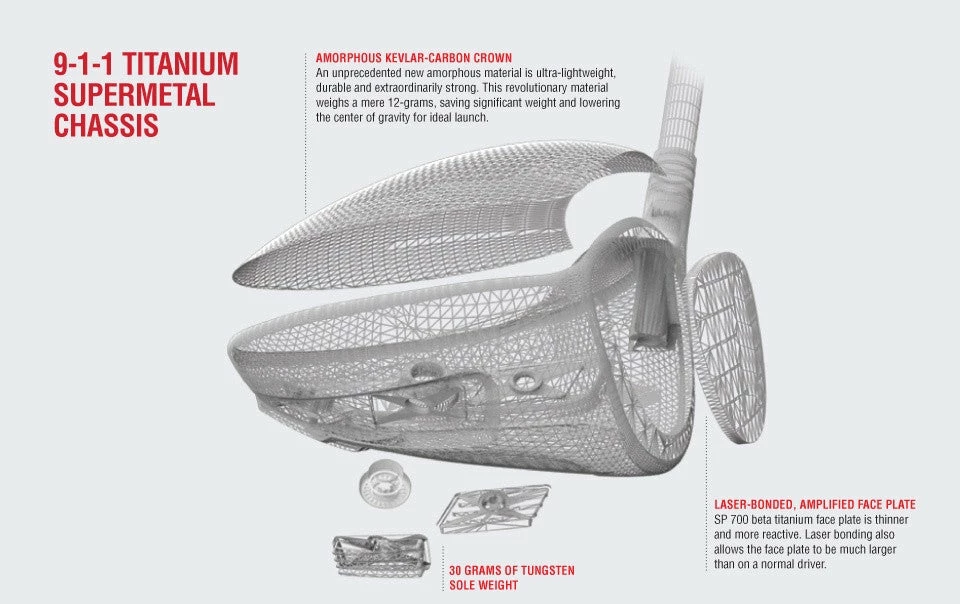 A ground-breaking combination of a 9-1-1 titanium chassis, Kevlar-carbon crown and three Tungsten sole weights exceeds all expectations in driver design and performance. This superior design, combined with the most advanced ultra-light AIR SPEEDER shafts, allow players with real swing speeds to generate maximum distance.